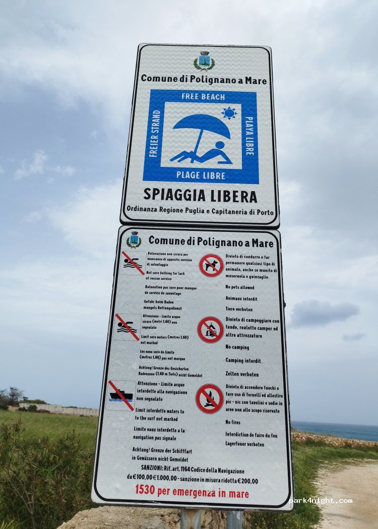 Comme un parking des Pouilles: sale (capote et papier hygiénique partout) et des voitures qui défilent toute la soirée pour faire leurs affaires. La vue est belle et la petite crique est mignonne, mais bon, au final c'est un peu loin de Polignano pour visiter à pied, donc autant aller plus loin. ah oui, et les toilettes étaient introuvables.