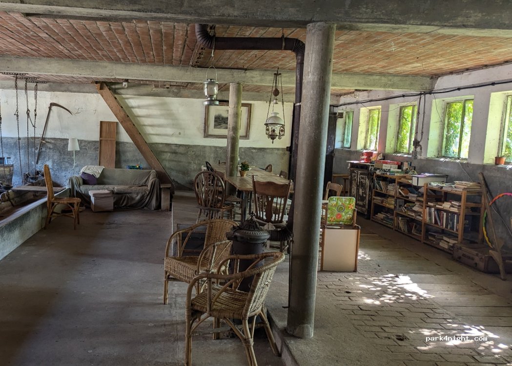 Tor ist geschlossen, kein Mensch auf dem Hof und am Haus, keine Klingel fürs Camping, keine Telefonnummer und es sieht ein wenig verlassen aus, bis auf einen Bus und ein Zelt. Ein Esel und ein Hahn waren zu finden… sind dann weiter gefahren.