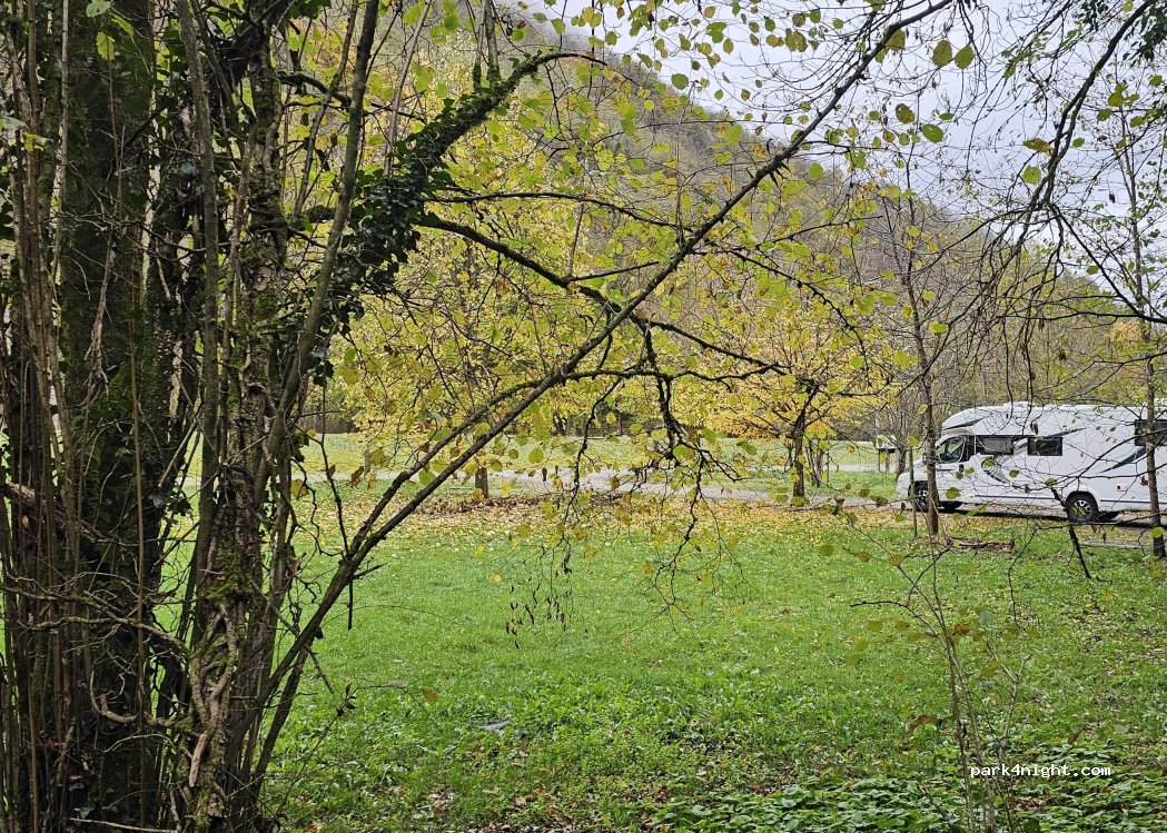 Ne pas se fier à la carte et rouler un peu plus loin (1,5km~) pour trouver l'emplacement. Arrivé à 22h, il y avait encore quelques places. Toilettes toujours inutilisable mais le spot fait l'affaire pour une nuit. Calme la nuit mais rapidement du bruit de passage le jour levé.