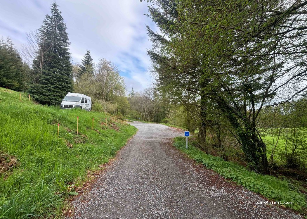 Le parking a été refait. Nuit très calme. Il ne se passe rien ici hors saison. Réseau mobile ok. Magnifique balade dans l’arboretum. Route étroite.