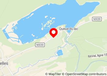 Une aire de pique nique au long d'une roule passante en journée, plus paisible la nuit. En campagne, avec départ de sentier de randonnée, notamment pour faire le tour du lac juste en dessous par le grand circuit de 21 km. Quelques km de Chimay.