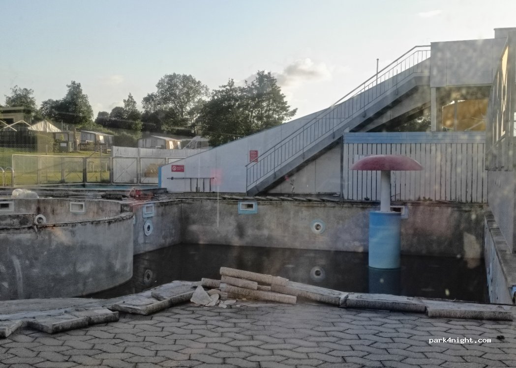 Zum Platz gehört auch ein Freibad mit Rutsch.