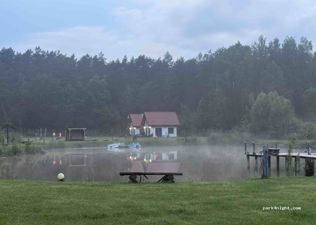 Tranquil woodland campsite. Friendly, happy owner speaks English and fluent German. Peaceful and quiet location. Immaculate clean toilets/showers. Extensive facilities available: firepit, pedal boat on lake, children's sandpit, deckchairs, table football, table tennis, hammocks, marquee, hot tub, BBQ, etc Close to nature (Moose and Storks) beautiful woodland and stunning lakes (gentle 800m woodland walk to nearby large lake). ***Two beautifully equipped luxury detached holiday houses also available for rent all year from 350-500 zloty per night *** Open all year (toilets/shower available when the weather is above freezing temperatures)
