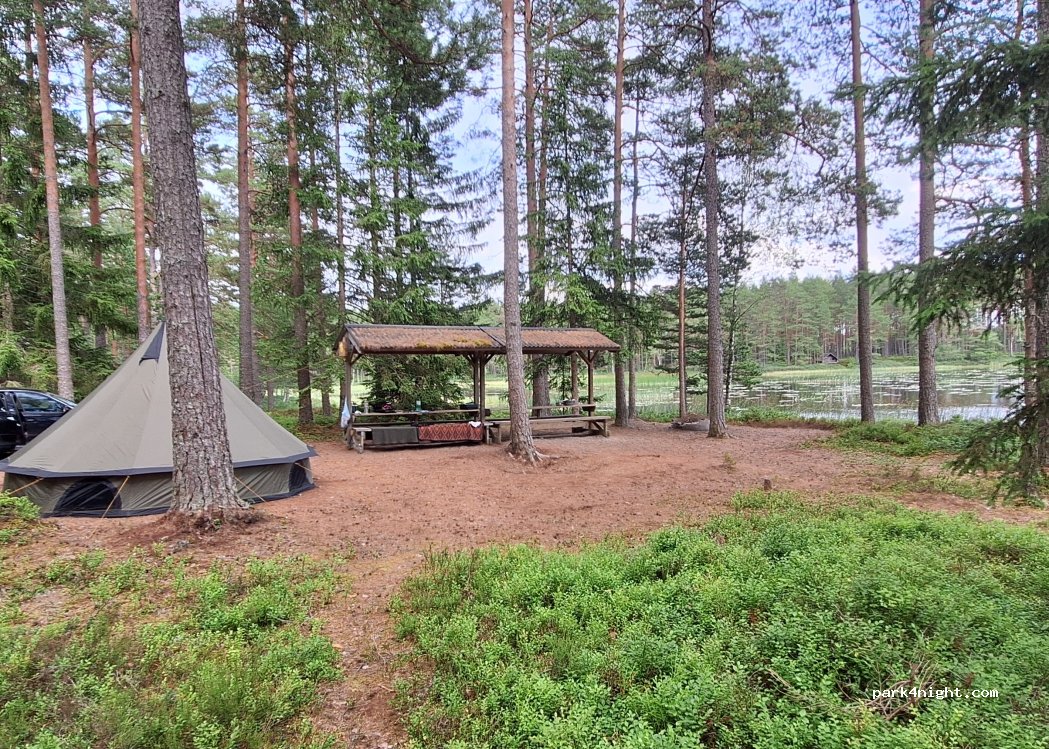 Wunderschöner Platz mitten im Wald. Platz für einen Camper. Feuerstelle und Picknickbänke vorhanden, baden im See nicht möglich. Als wir hier waren, lag bis auf ein wenig Klopapier im umliegenden Wald kein Müll herum, allerdings befand sich eine Menge Abfall in der Sandtruhe.. Bitte nehmt euren Müll mit und legt euch, wenn ihr einen kleinen Van habt, eine Portable Toilette zu oder nehmt einen Klappspaten mit…