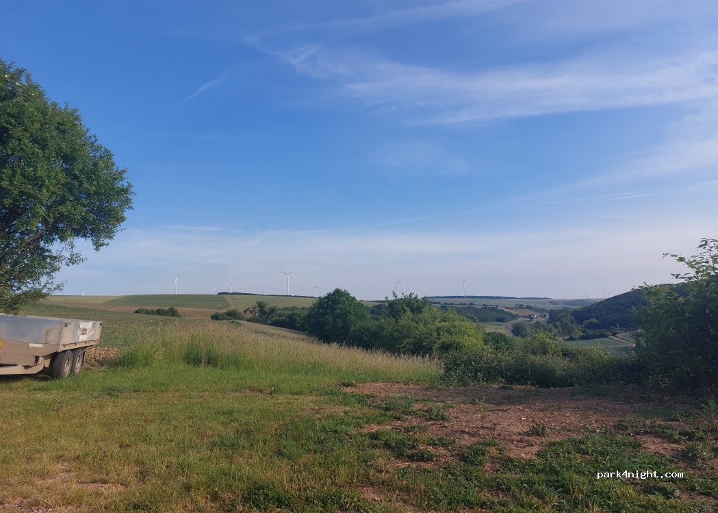 Bel endroit avec vue sur l'Appeltal et le Donnersberg. Bon accès par la voie publique. L'endroit est en gravier.