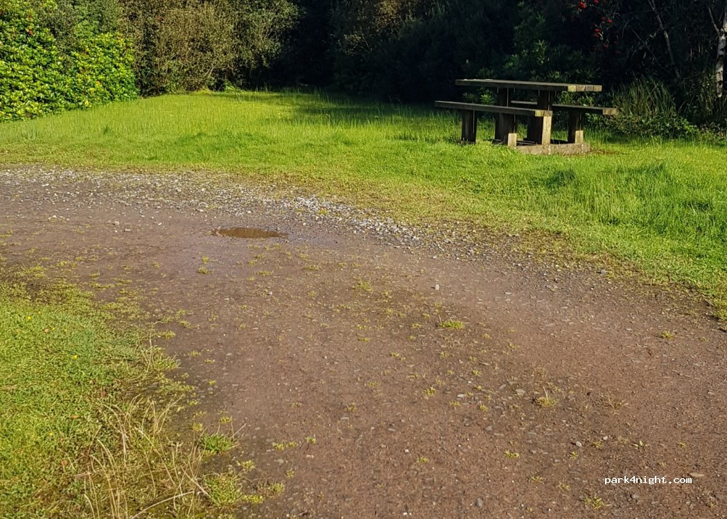 Quiet car park room for 2 campervans. Picnic tables. Only pay by Ringo app.
