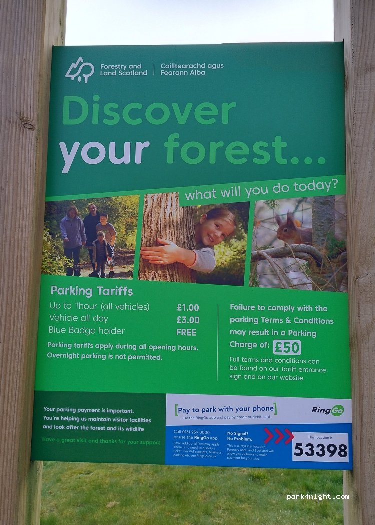 No overnight parking allowed - no longer part of the stay the night forestry scheme. Shame because it's a great spot!