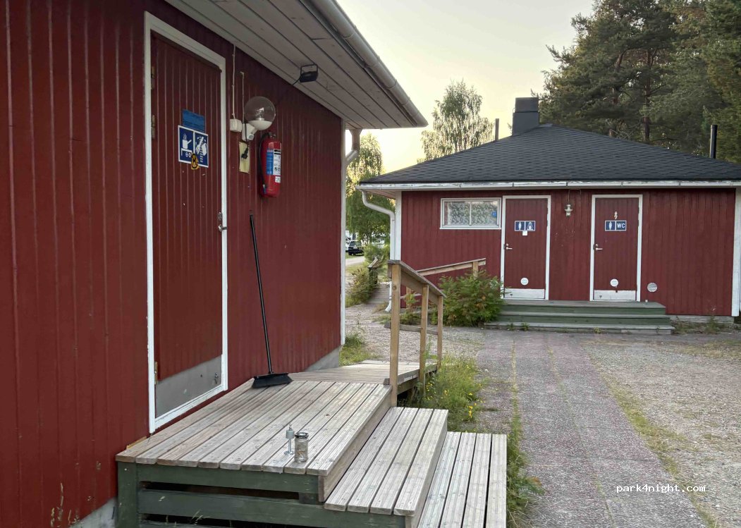 Enfin un vrai et bon camping comme on les aime. Terrain plat et gazon impeccable, haies de séparation, sanitaires très biens et d’une propreté irréprochable. Plage et vue sur le lac bref c’est la perfection pour un tarif très raisonnable pour la Finlande. Centre ville pas trop loin. Peut se faire à pieds.