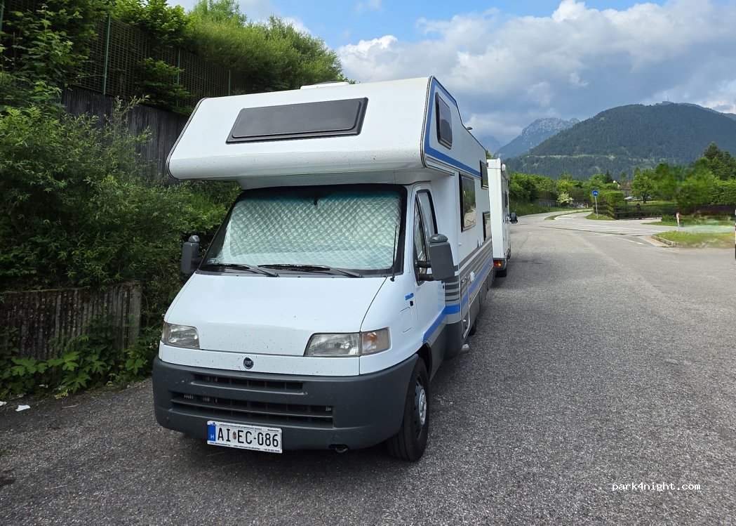 Grand parking tout prêt de la gare. Mais pas de train la nuit, donc au calme pour faire de beaux rêves. Point de depart ideal pour faire la balade magnifique : Orrido dello slizza Mais ne comptez pas faire de grasses matinées ici... Marcheurs, cyclistes sont là tôt, pour aller s oxygéner.