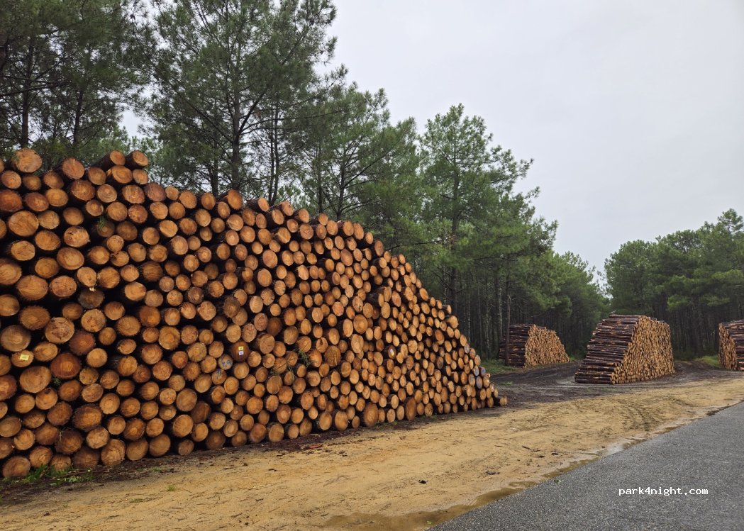 Aucun panneau n'interdit d'y passer la nuit. La route est passante mais l'endroit reste relativement calme. Il ne faut pas s'engager sur le chemin mais le parking est grand et agréable, en bord de forêt de pins.