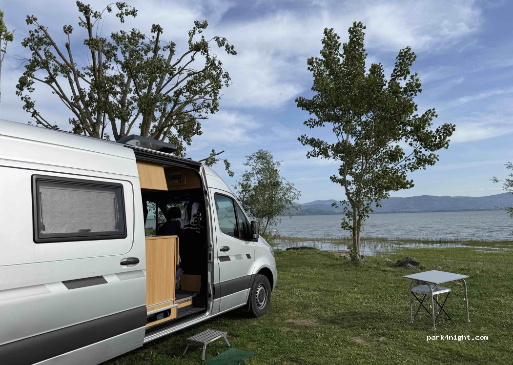 Attirati dal prezzo ottimo, circa 23€ a metà luglio e dalle buone recensioni, decidiamo di fermarci per una notte. Il camping è proprio sul lago anche se il lago in se è una schifezza, ma non è colpa del camping. SE CERCATE ANCHE UN MINIMO DI TRANQUILLITÀ EVITATE TUTTI I CAMPING SUL LAGO TRASIMENO. Urla e schiamazzi continui, bambini allo stato brado che giocano a pallone tra i camper.