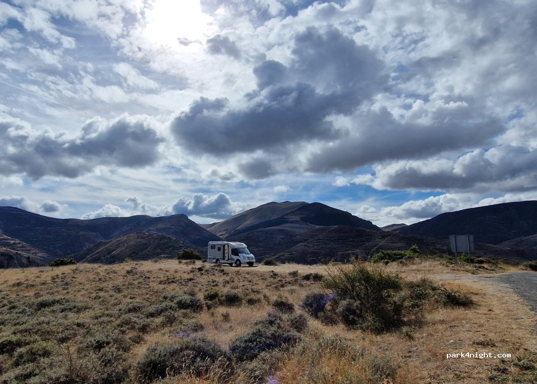 Mountain site with very good views. Ideal for sleeping one night. It is a mountain pass, next to a little-traveled road. Vultures and roe deer are seen.