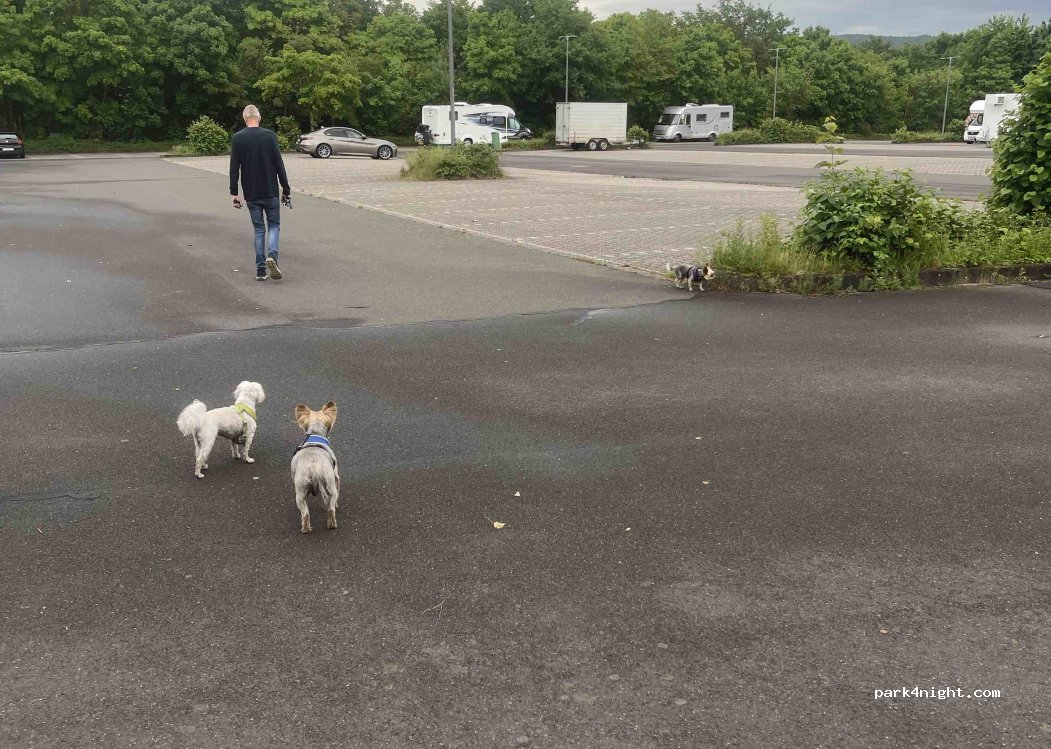 A quiet parking lot in front of a disused hotel. In the vicinity are the health clinics, two restaurants, the health resort park and the forest which lies above the vineyards of the Moselle on the Bernkasteler plateau. The parking lot is not cordoned off, there are no prohibition signs and the space is maximally used by locals to walk their dogs. I think a night or two is tolerated.