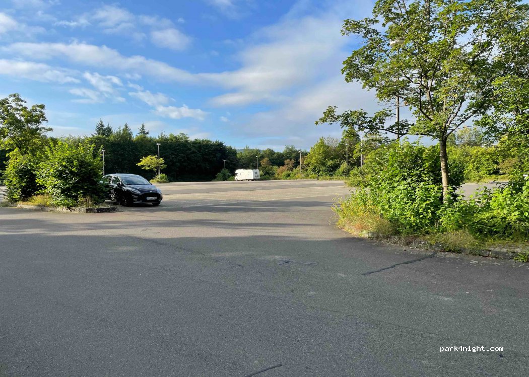 Bis abends von Fahrschulen genutzt. Bei Anbruch der Dunkelheit übt die Dorfjugend mit Ihren knatternden Bikes Stunts und Wheelies. Schon cool - aber nix mit Schlafen! Auch keine tolle Aussicht dafür aber Flutlicht von den Laternen - wow. Wahrscheinlich Tags ideal als Startpunkt für Fahrrad/Wandern. Ebene Stellfläche. - Nochmal muss ich so aber nicht übernachten.