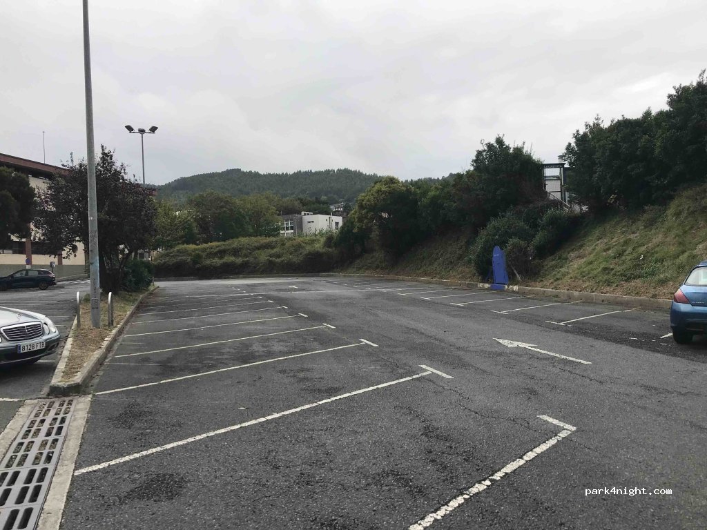 Grand parking très calme à côté du centre sportif/piscine Bermeo et de quelques pistes de skate. A environ 50 m il y a un supermarché Dia% et une aire de camping-car avec service de remplissage d'eau gratuit, vidange des eaux grises et noires, cependant, le parking pour camping-cars dans cette aire est assez difficile à manœuvrer et les espaces sont trop petits.