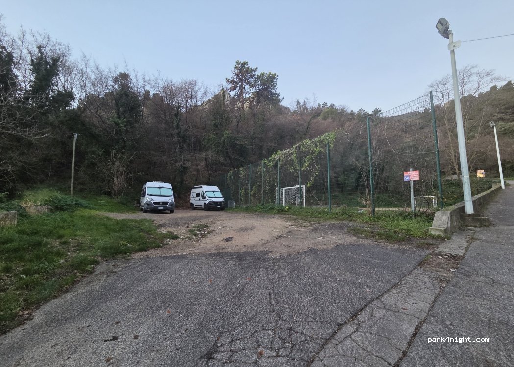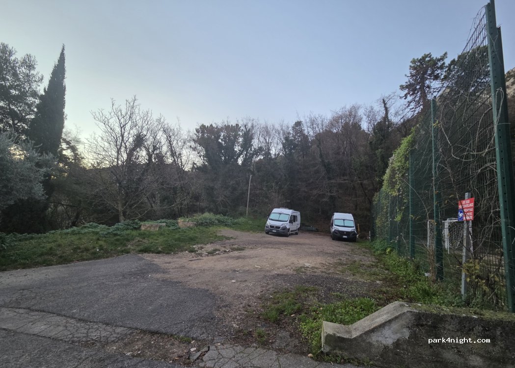 Ottimo parcheggio se si vuole stare tranquilli e soli. Parcheggio ombreggiato, a Marzo un po' freddino. Noi ci abbiamo passato 2 notti. Pochi minuti a piedi c'é una fontana d'acqua con un'area pic-nic attrezzata con tavolo e panchine.