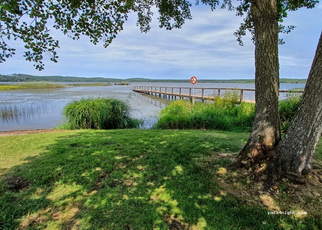 petit spot bien placé au bord du lac.mais bruyant avec les campings à proximité en période estivale. toilettes à proximité. une petite dizaine de places pour des vans.le tour du lac fait 15km ,de chemins en sous bois, praticable à vélo, bien que parfois sablonneux. la dernière partie à l'est du lac est à ne pas rater,avec sa passerelle en bois!