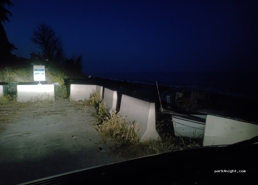 Parking for a bar where you can spend the night by the sea. Nothing special and a bit of garbage around (like in almost all of Calabria). We spent the night and had a nice bath and shower before leaving. A bit of passing cars and morning runners, but still a quiet and safe area.