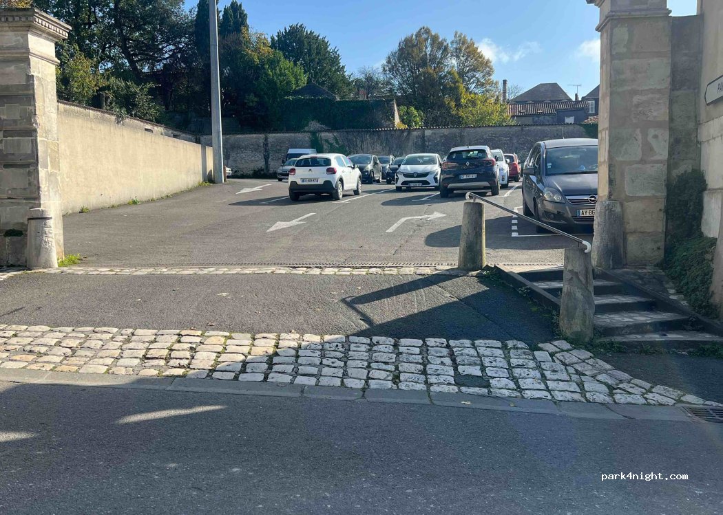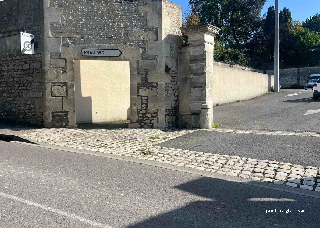 Parking un peu en pente dans le vieux Cognac . Aucun panneau d’interdiction. Pas de hauteur limite. Très bien pour le jeu Tèrra Aventura par exemple.