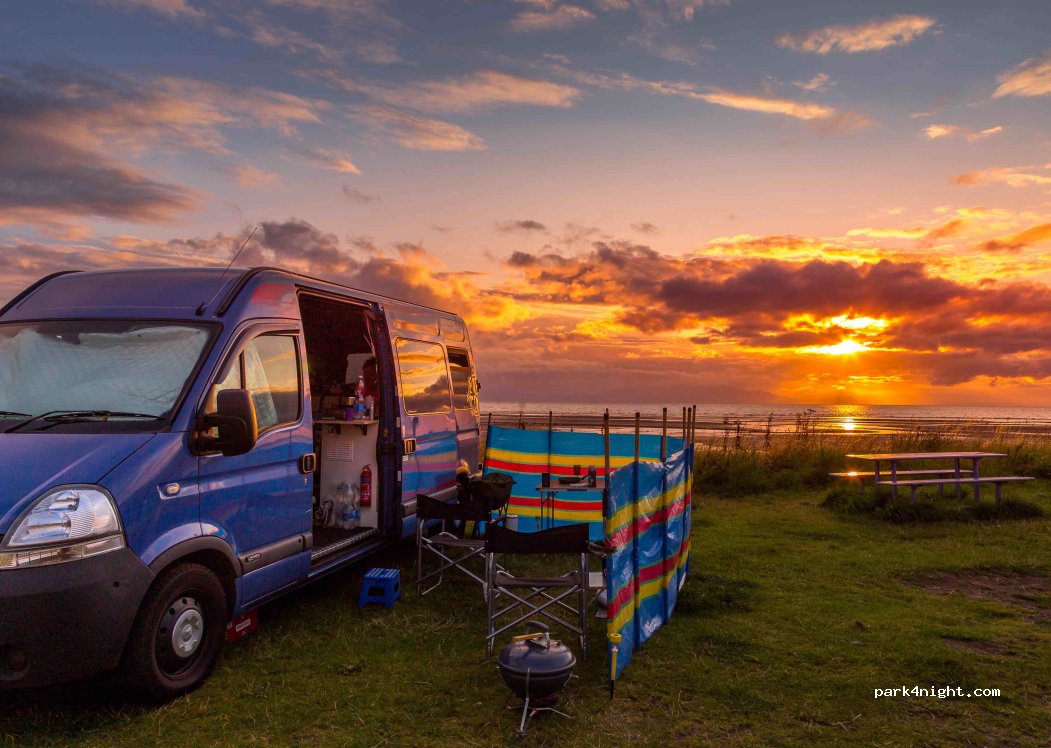 Lovely spot wide grassy. Peaceful overnight on a Thursday. Lovely sandy beach & park. Toilets, bin & black water disposal. Payment by app for overnight. It's not flat area to park on but plenty of spaces to find a suitable spot. DO NOT PARK HORIZONTAL. you don't own the right to a view.