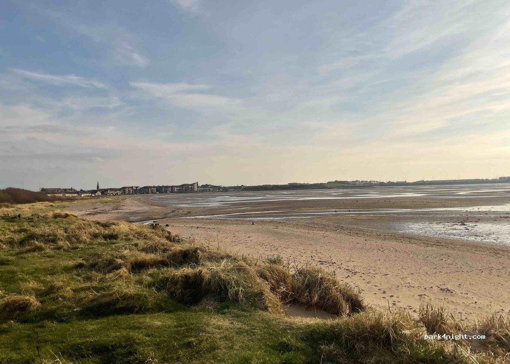 Great wee night spent here right on the shore. £10 a night payable via an app. Good chip shop 5 minutes walk. Morrisons 5 min walk and good dog friendly pub 10 minute walk. Nice wee town. Lost a star for the toilets. 3 out of order and the other 2 would not open despite paying 50p twice.
