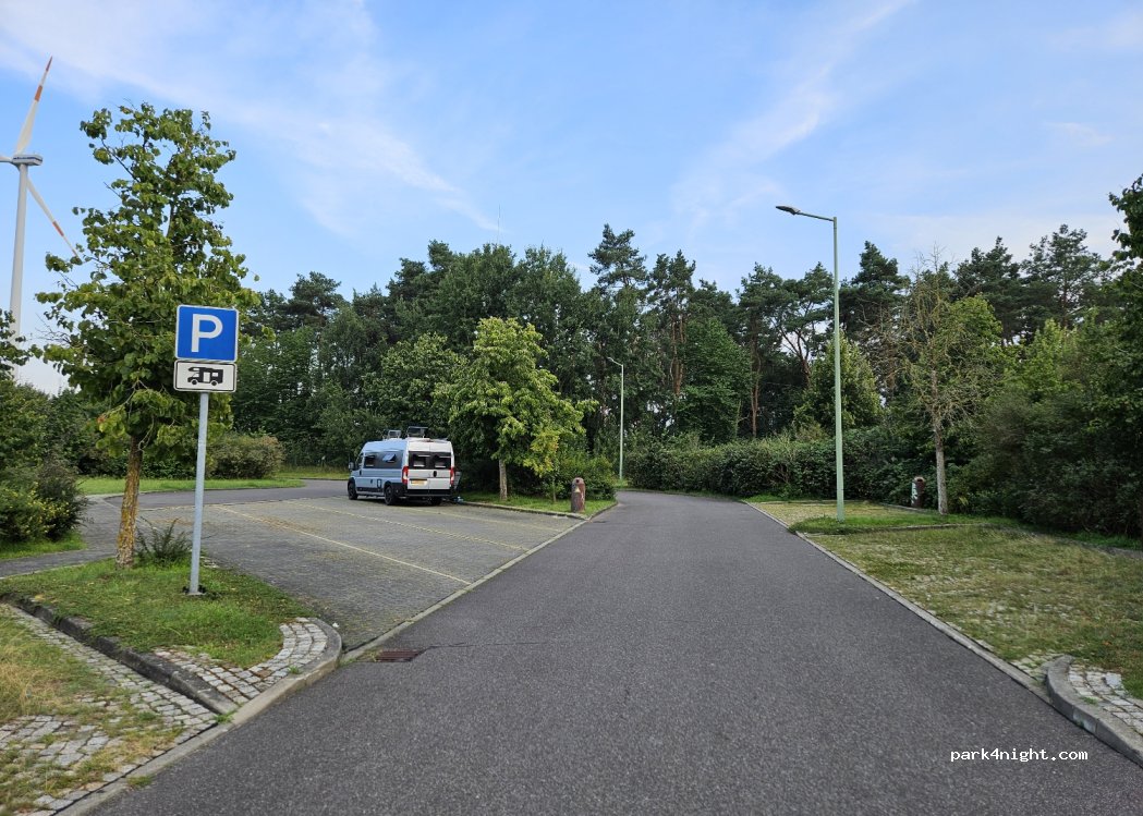 Very nice and quiet parking on both sides of the road. We have stayed here twice, on our way to holiday and our way back. Shell petrol station next to it, so you can get some coffee and sandwich for your breakfast. Separate parking slots for motorhomes. Will keep it saved and will use it in the future. Clean toilet, rubbish bins and tables. Cutted grass, safe to take your dog for a walk.