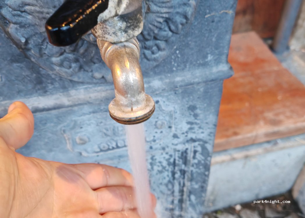Kostenloses Wasser aus einem kleinen Brunnen zwischen den letzten beiden Eingängen des Marktes.
