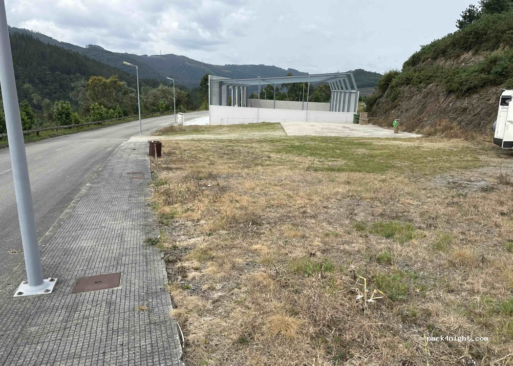 An area with large, demarcated spaces with drinking water and electricity in each space. It features hot showers (also for transit users), restrooms, a Wi-Fi zone, free bike rentals, electric scooter rentals, a swimming pool, a barbecue grill, a picnic area, a playground, daily bread and pastries, and a laundry area with a washing machine and dryer.