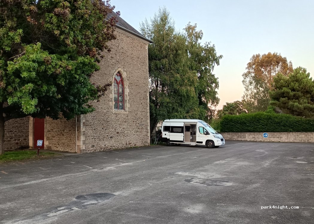 parking au calme le long de l'église, wc à l'entrée. Très légèrement en pente mais ne gêne pas. Nuit paisible, bon spot pour une nuit.