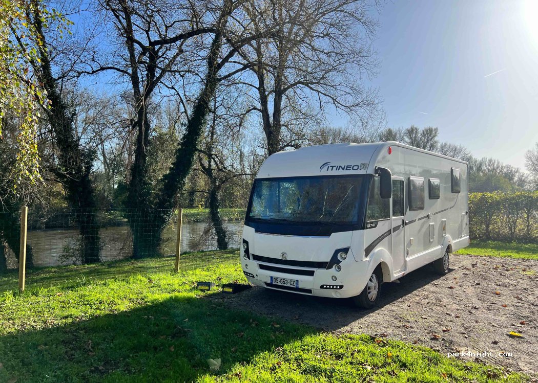 Aire très sympa au bord de la rivière. Il n’y a pas de sanitaire mais les services eau + électricité. Les emplacements sont grand et stabilisés avec un coin de pelouse.Parfait pour une halte au bord de l’eau.