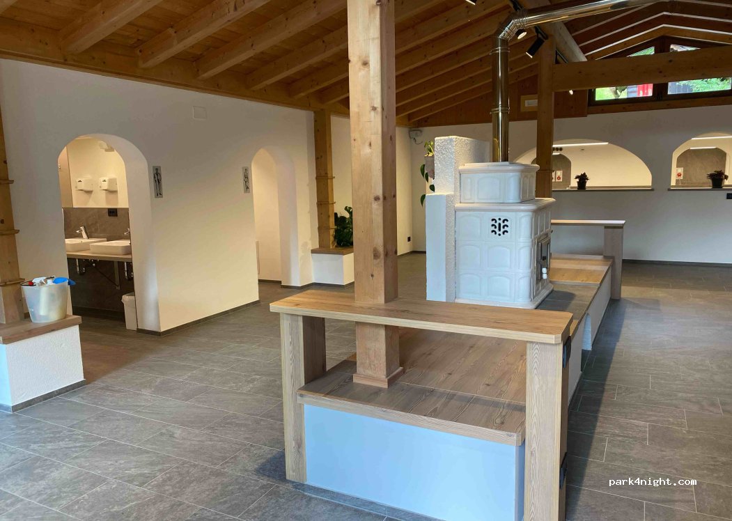 Es un camping excepcional! Precioso y muy cuidado, los responsables tallan en madera y todo tiene un toque artesanal. Las parcelas increíbles y los servicios sin palabras, lavandería, duchas, baños y zona para bebés (bañeras,cambiador) increíblemente limpio y cuidado. Servicio de bar y terraza. Esta muy cerca del teleférico de marmolada. Lo más flojo la zona de aguas de autocaravanas.