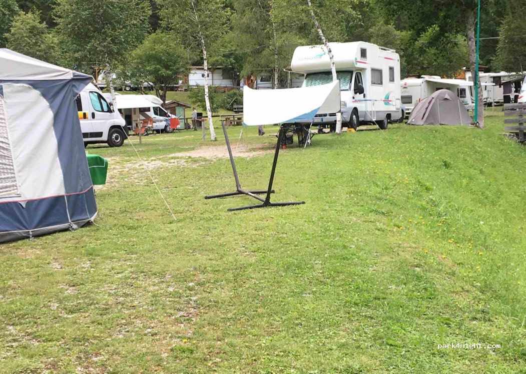 Càmping amb bones instal·lacions, tot i no tenir cap parcel·la disponible ens ha deixat passar la nit a la zona de park&go (25€), una zona d'espera per qui te reserva i vem poder fer servir tots els serveis, dutxa, rentadora (4€), secadora (4€). Check out a les 11h. El responsable molt agradable. El riu que hi ha al costat fa una olor desagradable però no és insoportable. Nit molt tranquila.