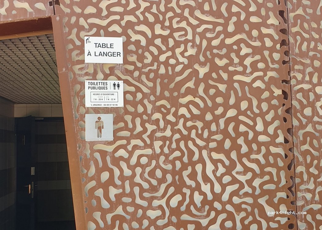 Achter de reeds genoemde gemeentelijke betaalde parkeerplaats voor campers ligt een grote openbare parkeerplaats. De slagboom is 2m, dus geschikt voor campers. Gebruik dezelfde ingang/richting als de gemeentelijke betaalparking, maar ga rechtdoor, onder de slagboom door. voorzieningen aan de andere kant van de weg, weinig lawaai van de weg