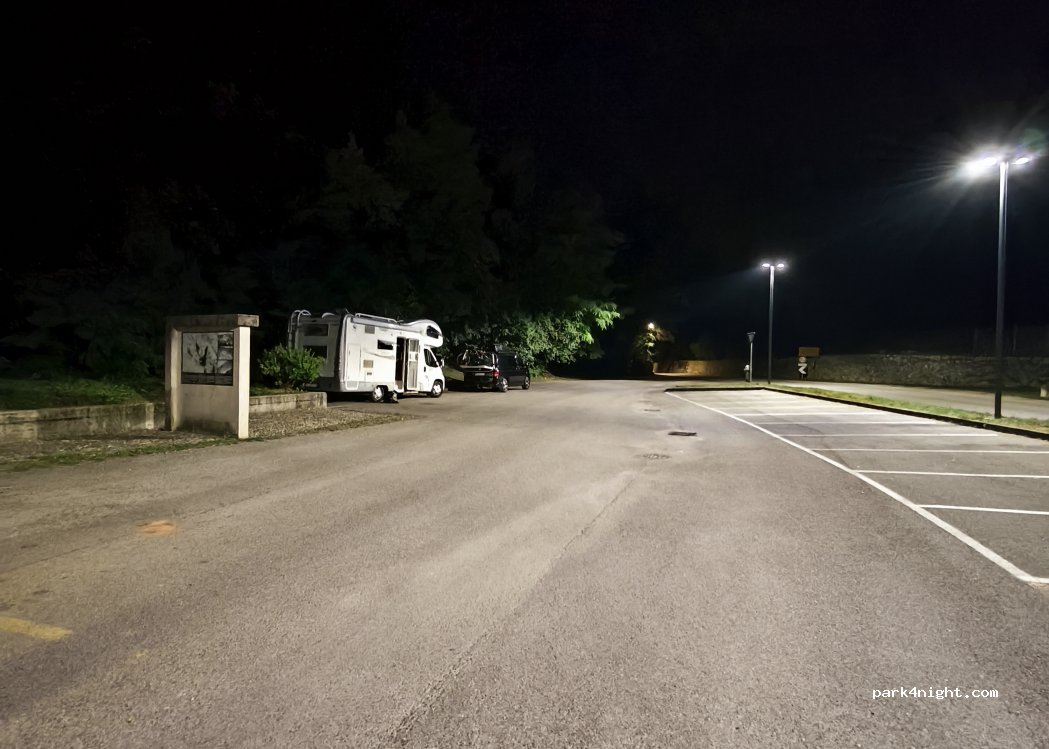 È un buon posto dove passare la notte, tranquillo e illuminato. I posteggi a fianco delle siepi sono abbastanza in piano.