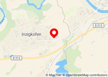 Offizieller, ausgeschilderter und kostenloser Reisemobilstellplatz. Nebenan sind Höfe, Häuser und ein kleiner Friedhof.