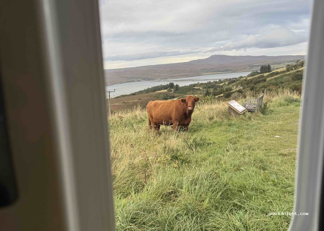 Absolutely stunning park up - no one else there when we arrived at 7:30pm and no cars passed by! Toilets in Tongue are about a 20 minute walk away but we just went down in the morning in the car. Plenty of grassland if you need to sneak for a wild one. Be aware of free roaming cows - we had a curious boy at the van door in the morning!