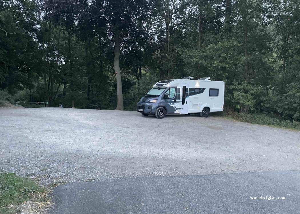 Nice spot by some beautiful woods with walking and downhilling trails. There are walkers from the early hours. Most fine. Felt safe although some funny comments made by two walkers. We were one of three vans staying one night.