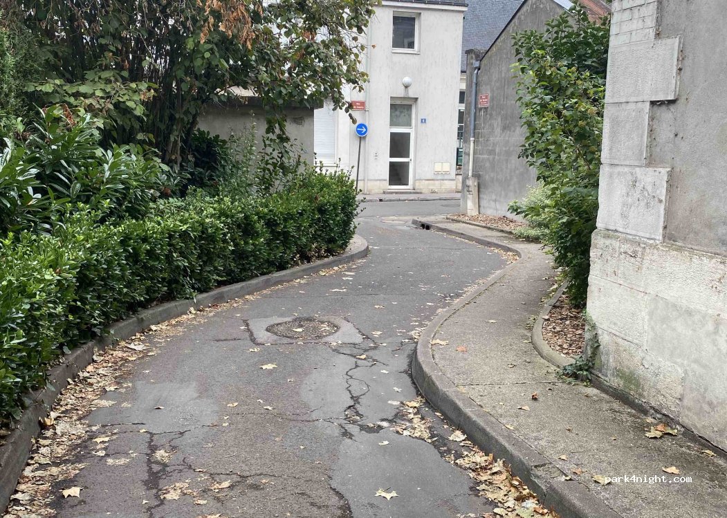 Au centre de Tours parking sous les arbres derrière la grande église. Boulangerie au coin de la rue. parking payant jusqu'à 9h-18h30