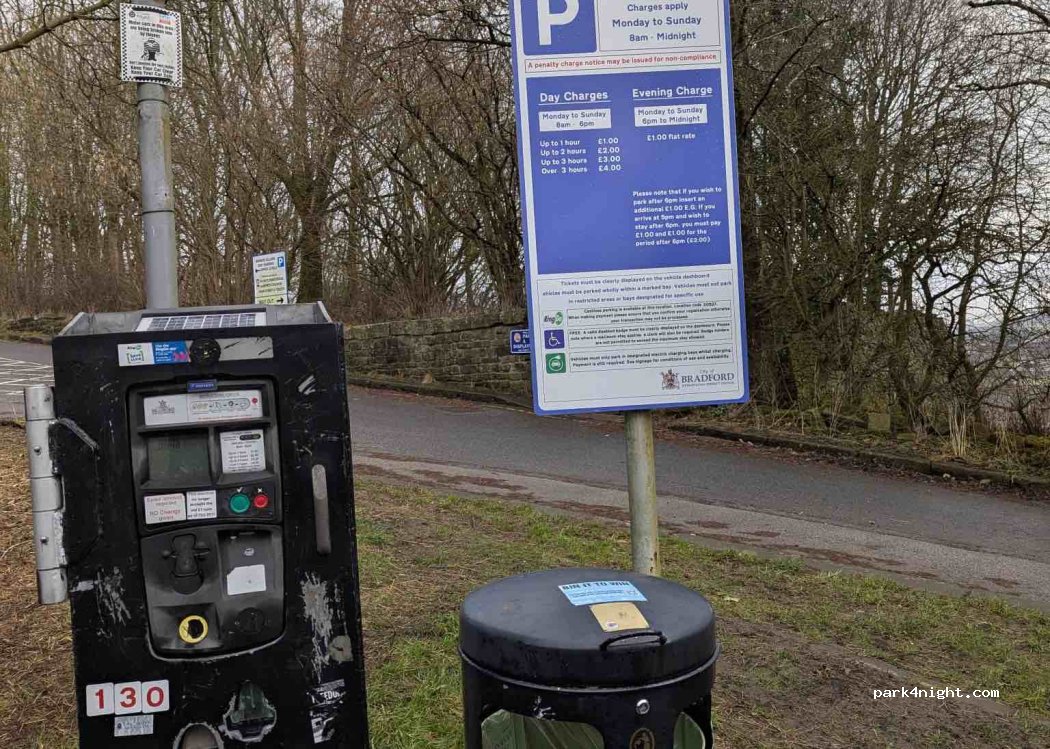 Excellent stop for exploring Haworth. We paid £15.20 for parking from 7 pm on Saturday until 11:59 pm Monday. Great value. Very quiet at night. Make sure you have a torch, because it is dark. 10 minutes into Haworth, along a good footpath. Reasonable reception on 3 mobile. No facilities other than bins .