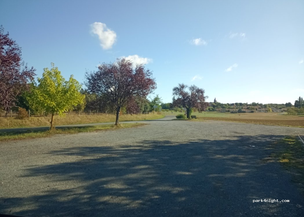 Parking super pour la nuit, calme, à côté d’un terrain de rugby. Petit café resto sympa proche sur la D8 direction Perigeux pour le café du matin ou autre.