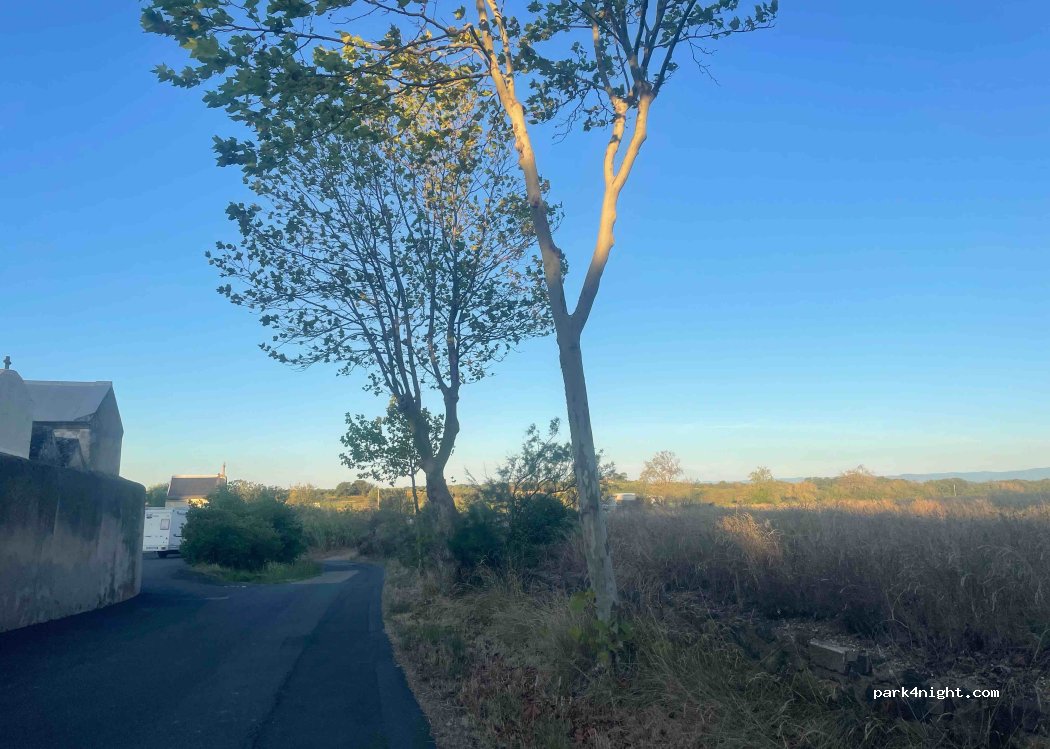 The paved parking lot in the cemetery on the outskirts of the village. very quiet place at the edge of a small country road, very little traffic and only a few kms from the A75. Very easy access by avenue de la paix.