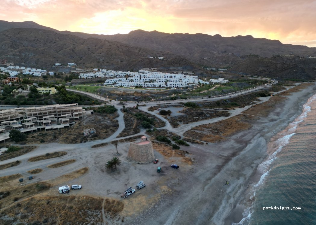 Traumhaft schön und ruhig, man hört nur die Wellen. An der gesamten Küste von Mojacar dürfen Fahrzeuge mit mehr als 5m Länge nicht stehen. Das ist sehr deutlich ausgeschildert und wird von der Polizei auch durchgesetzt. Einfach Regeln beachten und gut ist.