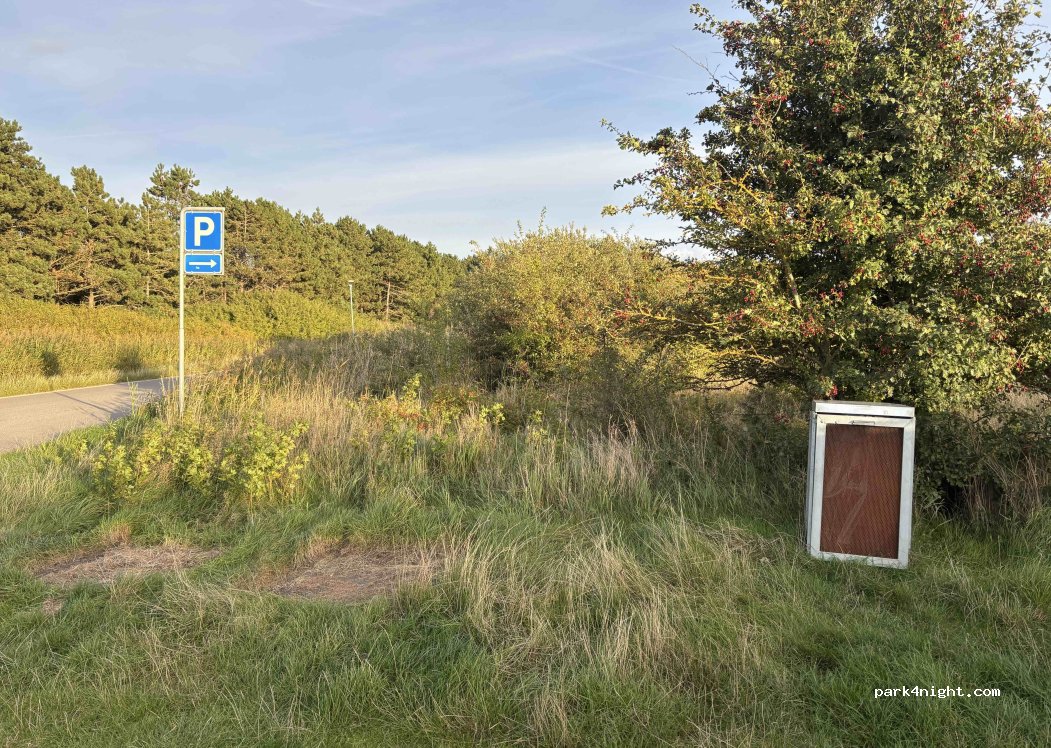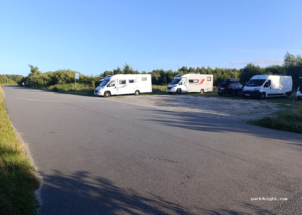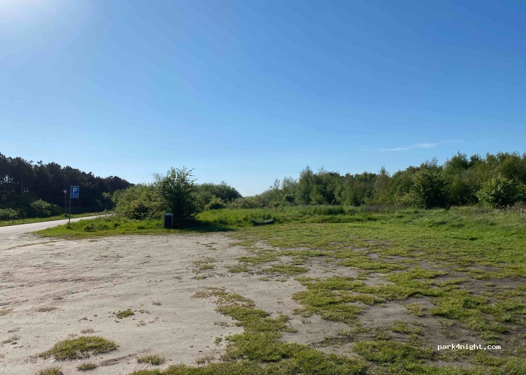 Petit parking derrière les dunes à 100 m de la mer. A partager avec les voitures. Pas de service. Avons passé une nuit avant de prendre le ferry, pas de souci, très calme