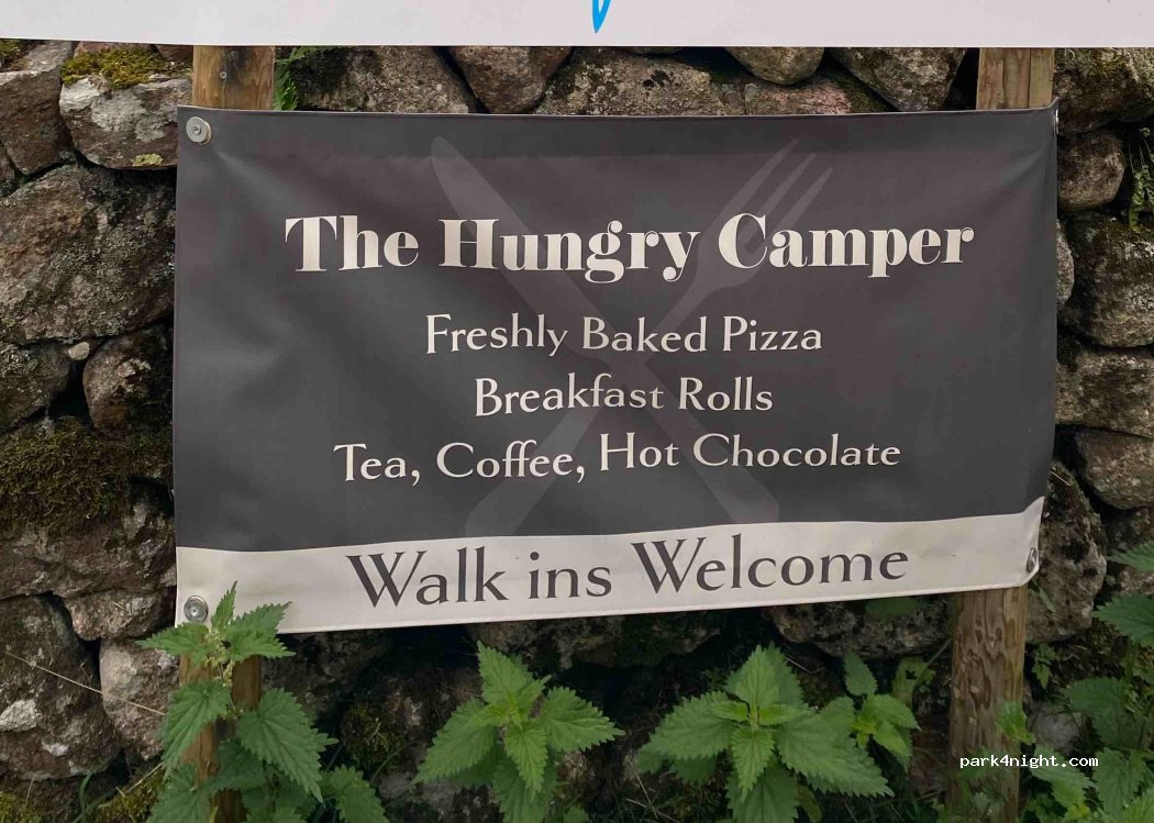 Dalegarth campsite, stayed here for 4 nights. Has portable toilets/showers and open Swedish style showers on site, fresh water fill up and food van every morning and evening. Good walks straight from site and wild swimming easy access to river right next to site. £30 a night for two people in campervan and £8 extra for the dog.