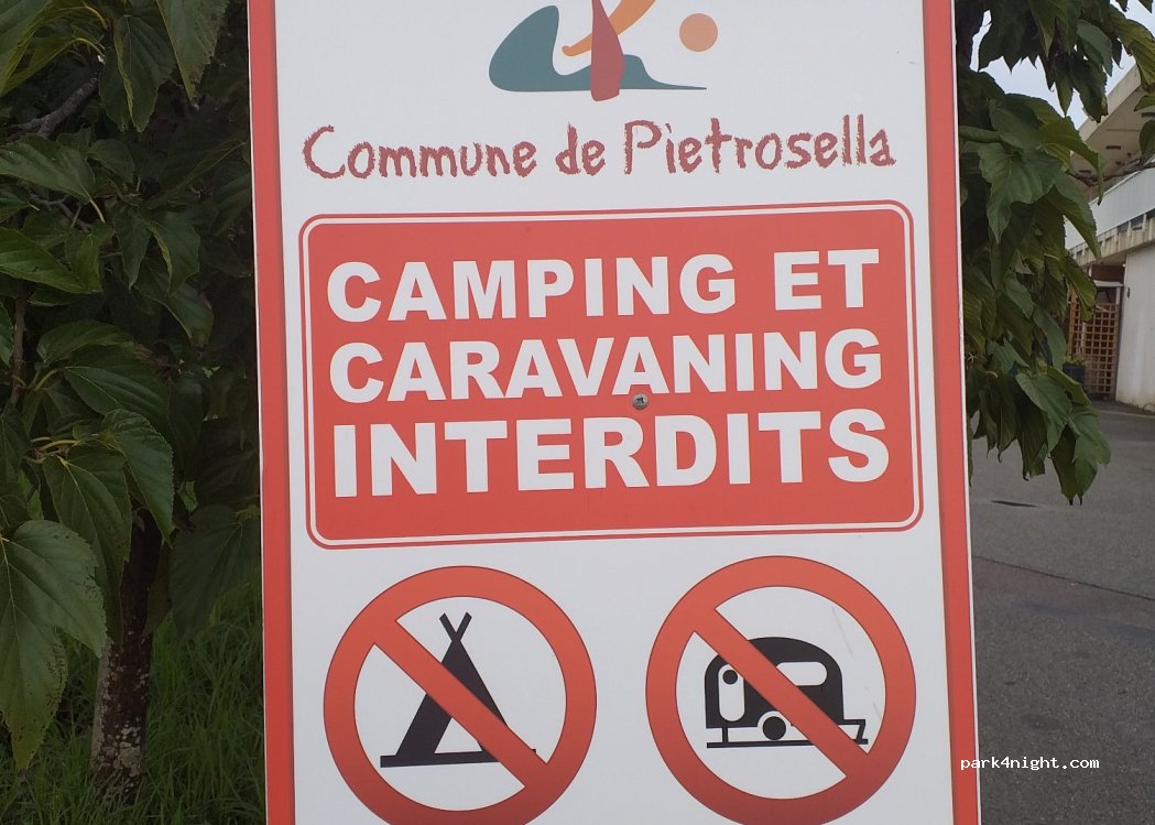 Onverharde parkeerplaats voor een Carrefour. Dichtbij de stranden en een grote picknick- en speelplaats (pingpongtafel, tennisbaan, enz.). Let op: voor voertuigen met een lage bodemvrijheid, gebruik de uitrit, aangezien de ingang erg beschadigd is. Borden verbieden overnachtingen, zoals op veel plaatsen op Corsica.