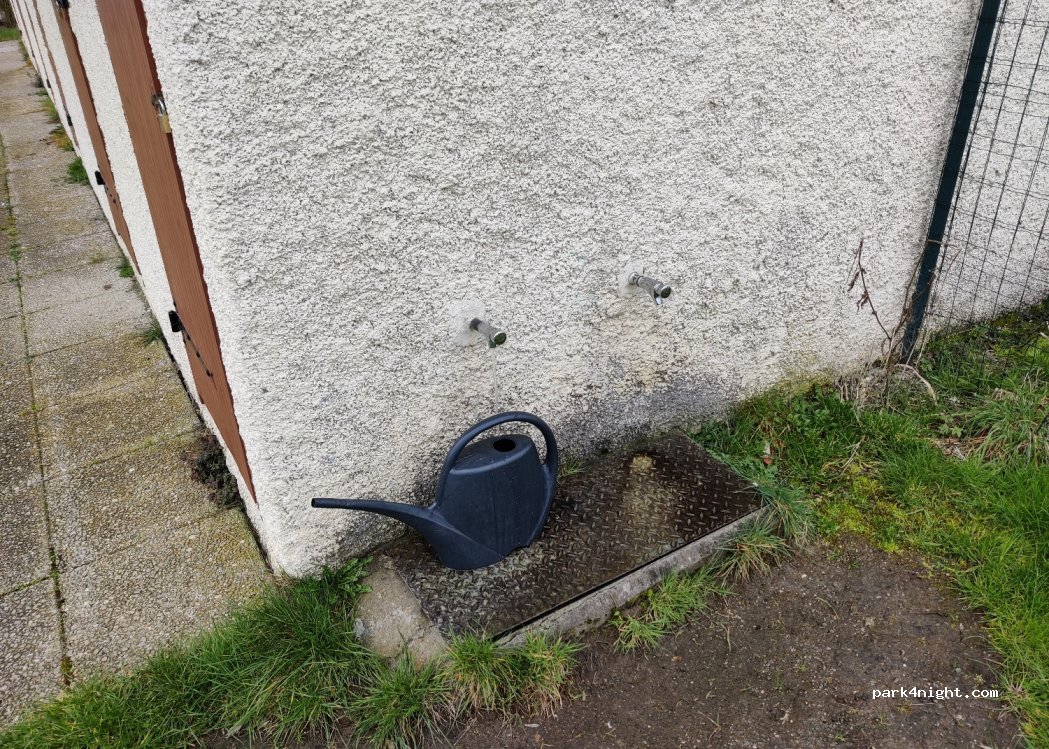 Booth with showers, toilets, sinks, there are two external taps (super slow) for filling tanks.