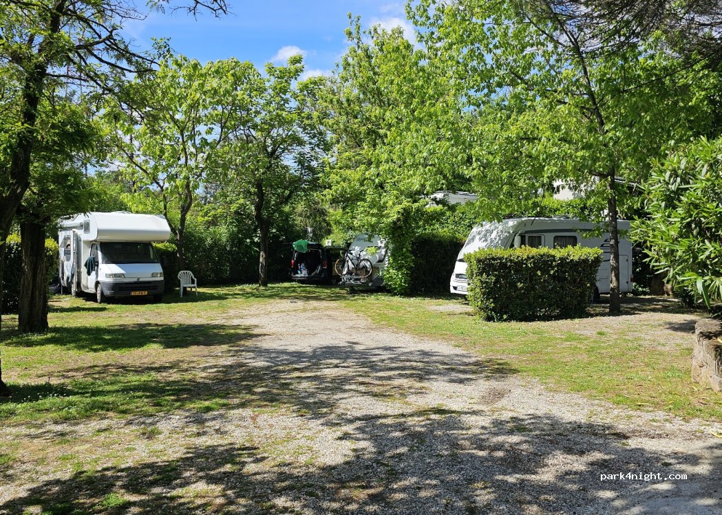 Nous avons séjourné pour 2 nuits en camping car, emplacement ombragé et assez grand pour notre camping car. Par contre accueil très froid, a la piscine bonnet de bain obligatoire transat vétuste. Pour les douches et sanitaires très très moyen. Nous avons testé le restaurant aprés avoir fait notre choix on nous prévient qu’il n’y a que des pizza bref nous sommes en Italie. Nous avons passez 2 heures à table pour un apéro et 3 pizzas et encore on ne nous à même pas proposé de café ni de dessert le serveur était aussi tranquillement en train de manger ça pizza.