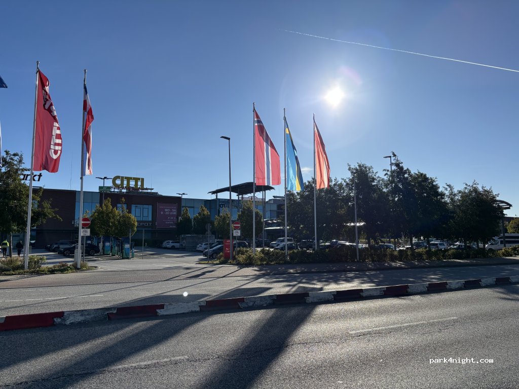Excelente zona de estacionamiento para autocaravanas. Está pensando para los que van hacia Dinamarca para abastecerse de suministros. Nosotros volvíamos hacia Alemania, pero nos vino muy bien descansar y disfrutar del centro comercial. La ciudad está a 2 Km. y hay que coger el bus cuya parada está frente al estacionamiento. Pernoctamos muy tranquilos en una zona muy cuidada y bien organizada.