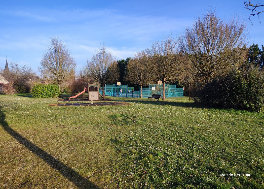 Parkeerplaats naast het sportveld, voldoende voor één nacht. Zeer rustig, alleen de dorpskerk rinkelt van tijd tot tijd.