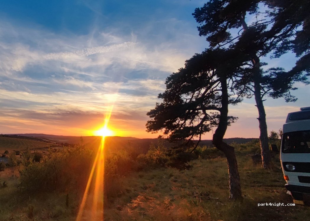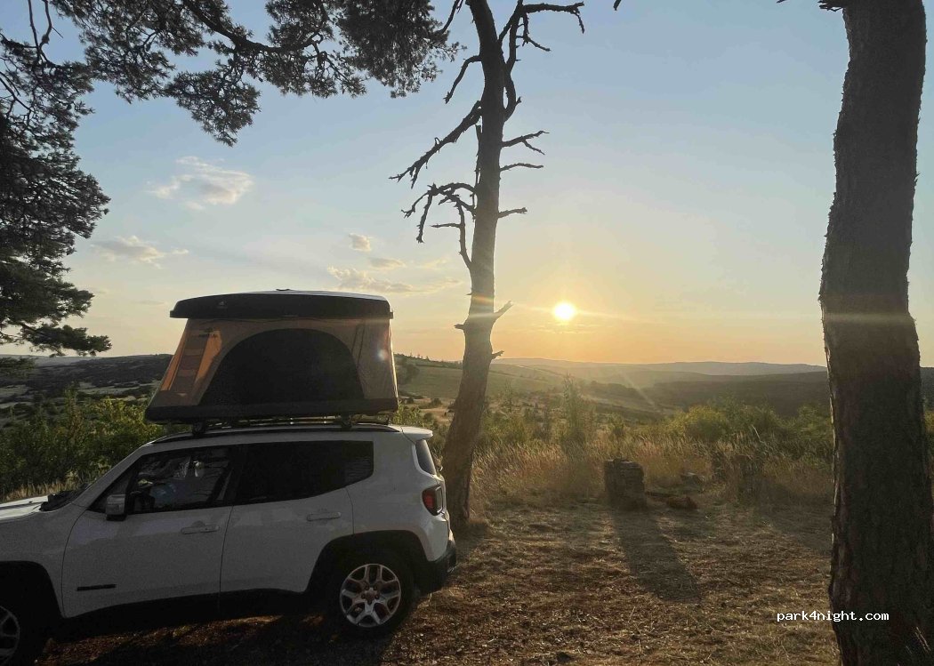 Comme indiqué dans les commentaires précédents, endroit idéal pour une nuit en van, au bout d’un chemin positionné en hauteur le long d’une route (nous sommes arrivés vers 20h et il n’y avait que peu de passage), superbe coucher de soleil sur le paysage que l’on surplombe. Il y a un chemin un peu plus haut dans lequel nous n’avons pas osé nous aventurer avec notre vieux combi, mais la vue doit être encore mieux